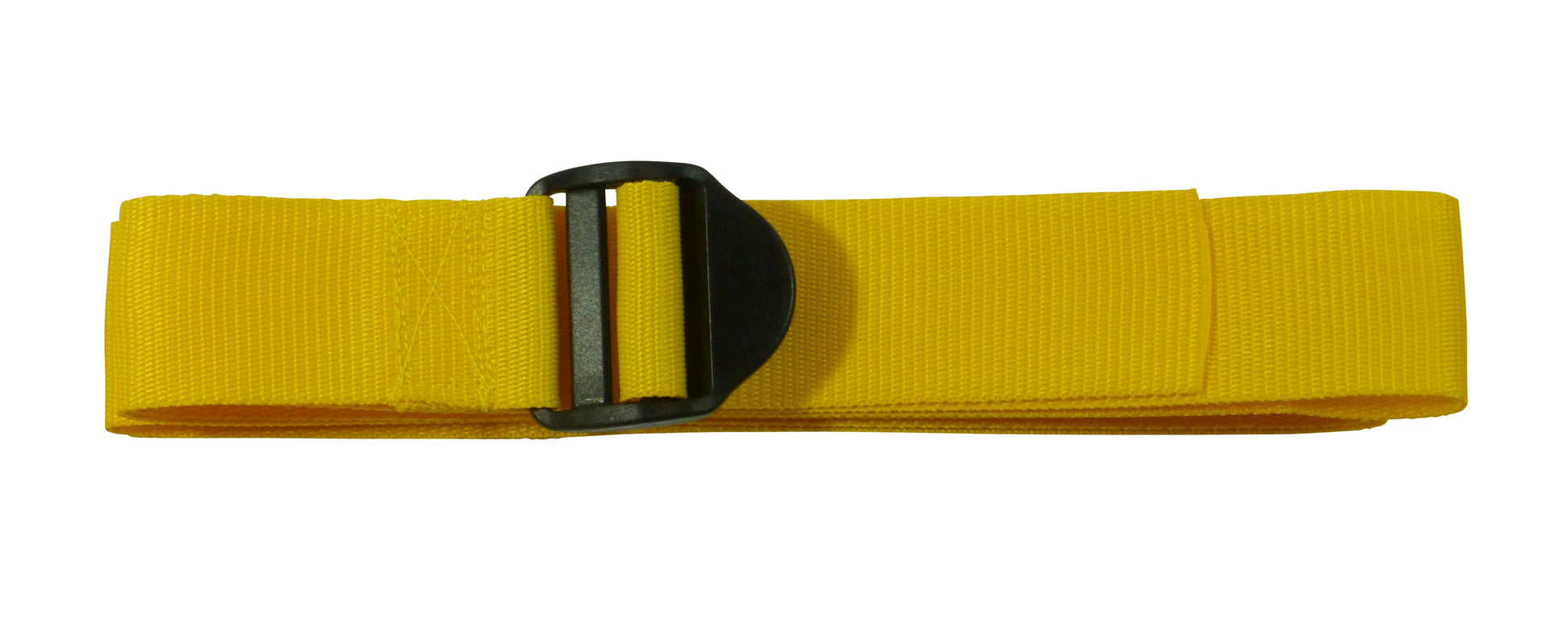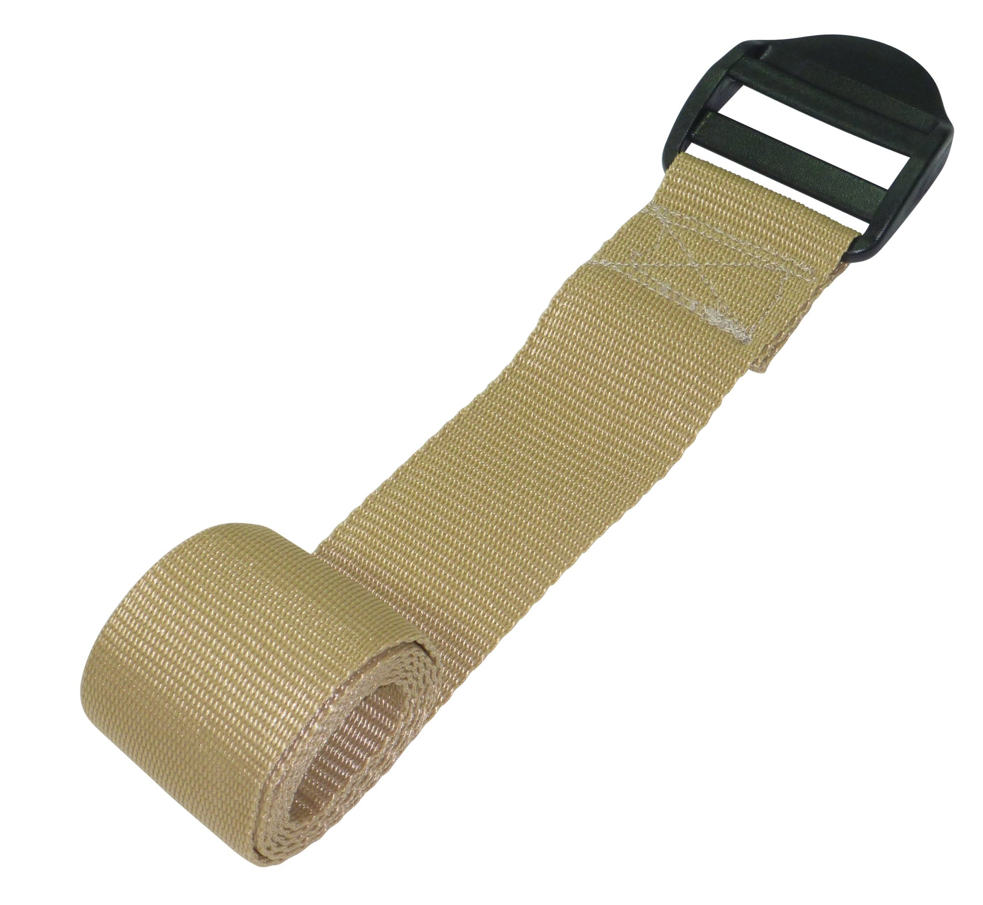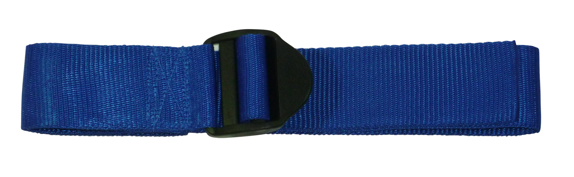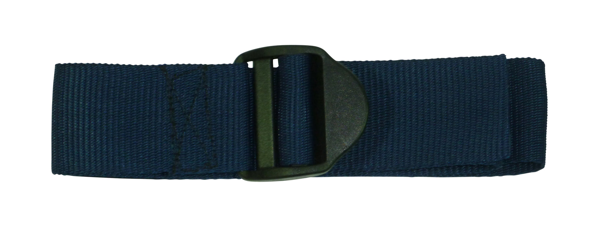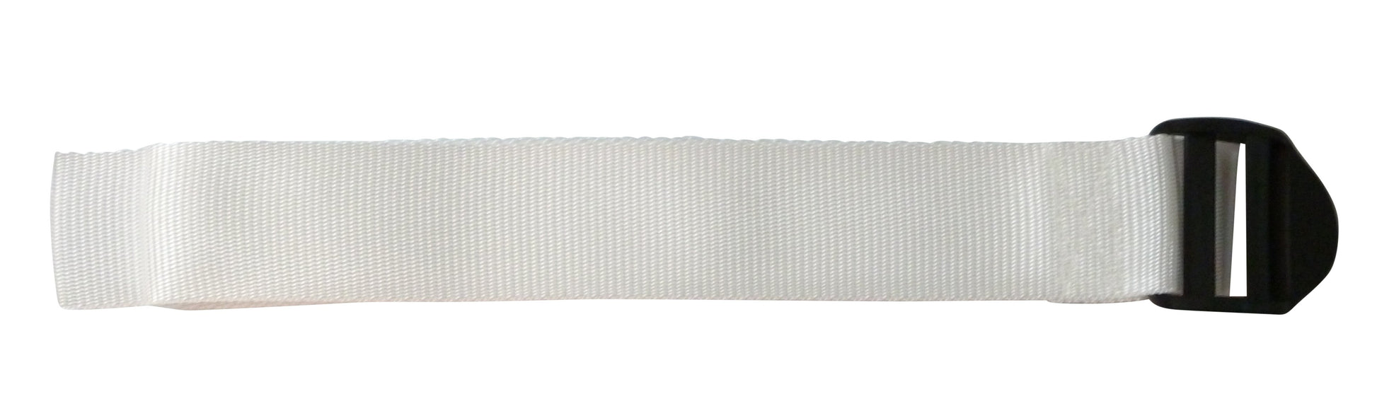 These straps are made from 50mm (2") wide polypropylene webbing with a ladderlock buckle sewn on one end. The ladderlock is a buckle with no moving parts which uses a highly angled bar to control the movement of thewebbing. It is very eady to tighten the strap and once released, the webbing will be retained by the buckle. You then lift the bckle using the finger hold to release the webbing. These come with an optional triglide retaining buckle which can be ued to tidy up the free end and to ensure the webbing does not slip.