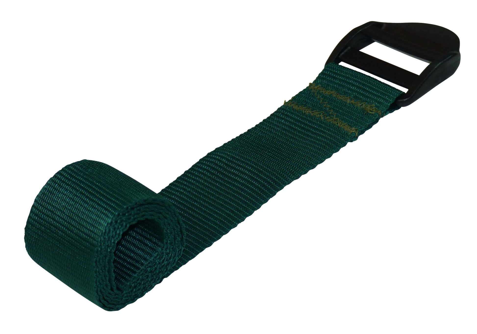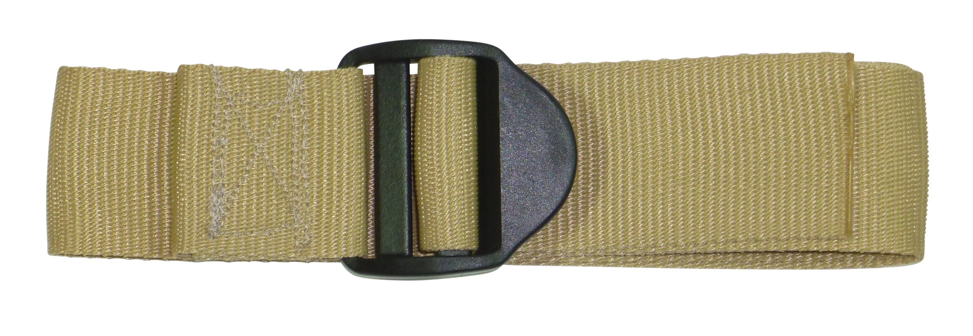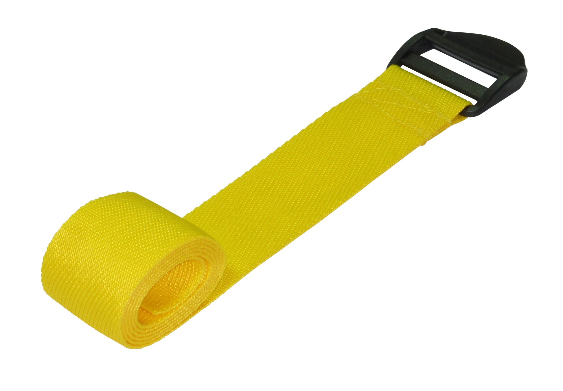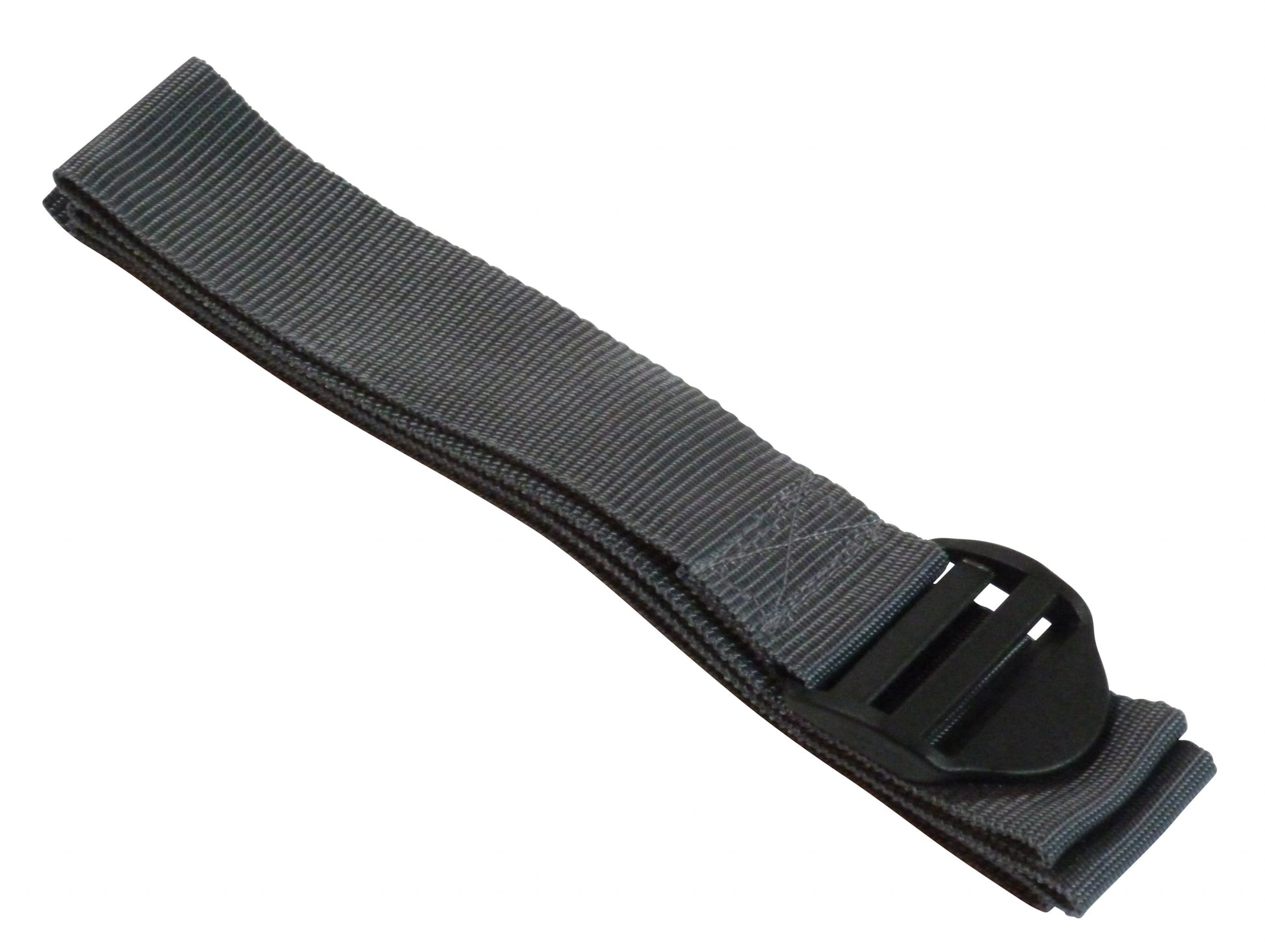 These straps are made from 50mm (2") wide polypropylene webbing with a ladderlock buckle sewn on one end. The ladderlock is a buckle with no moving parts which uses a highly angled bar to control the movement of thewebbing. It is very eady to tighten the strap and once released, the webbing will be retained by the buckle. You then lift the bckle using the finger hold to release the webbing. These come with an optional triglide retaining buckle which can be ued to tidy up the free end and to ensure the webbing does not slip.