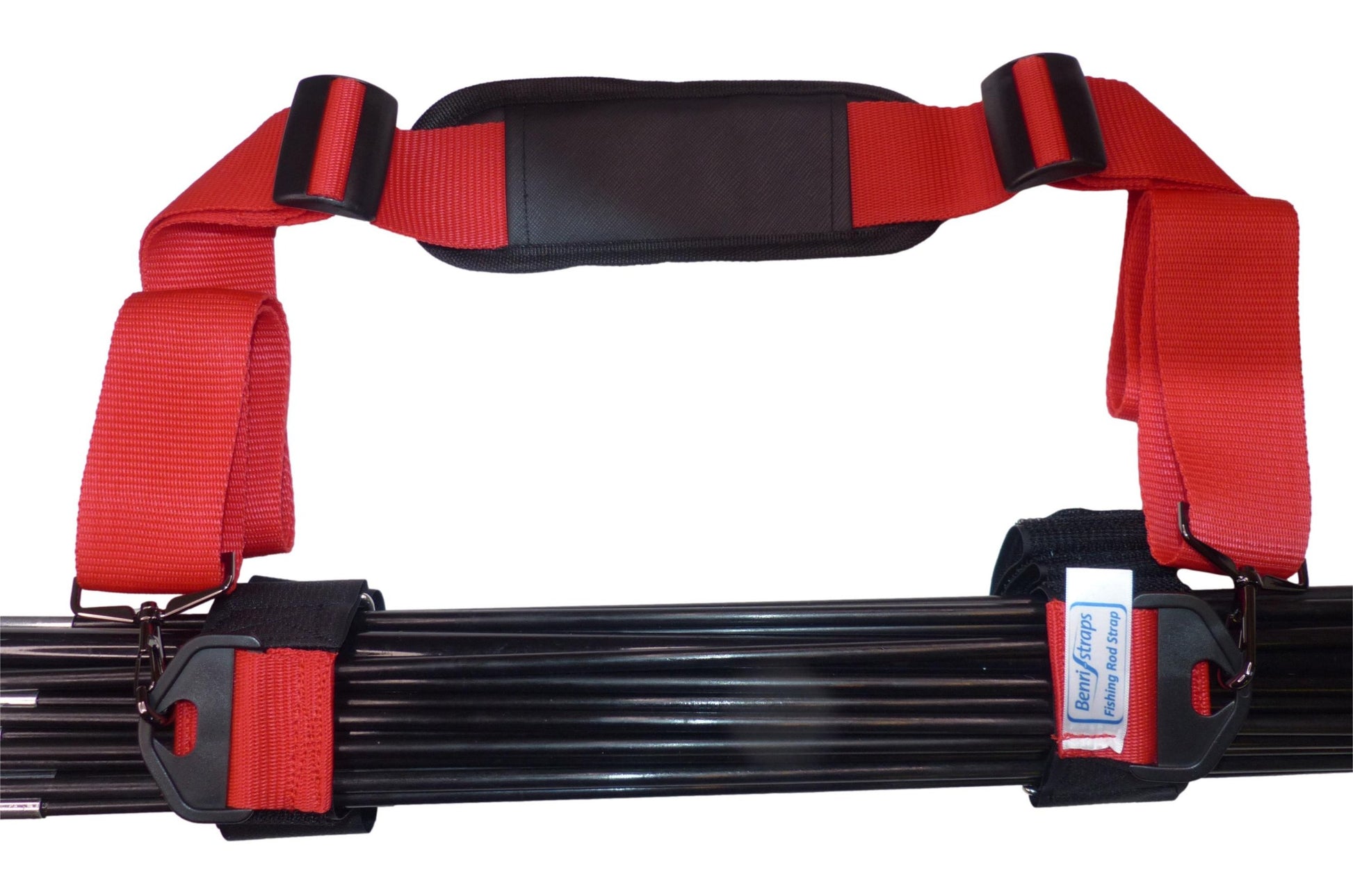 The Benristraps Fishing Rod Carry Strap is designed to carry long fishing rods. There are two hook and loop straps which go around the rods to secure them. A third carry strap with a comfortable shoulder pad clips onto the two hook and loop straps so that the bundle can be easily carried to the fishing spot. The strap is compact enough to be slipped into a bag or pocket when not in use. The Benristraps Fishing Rod Carry Strap is available in a range of colours.