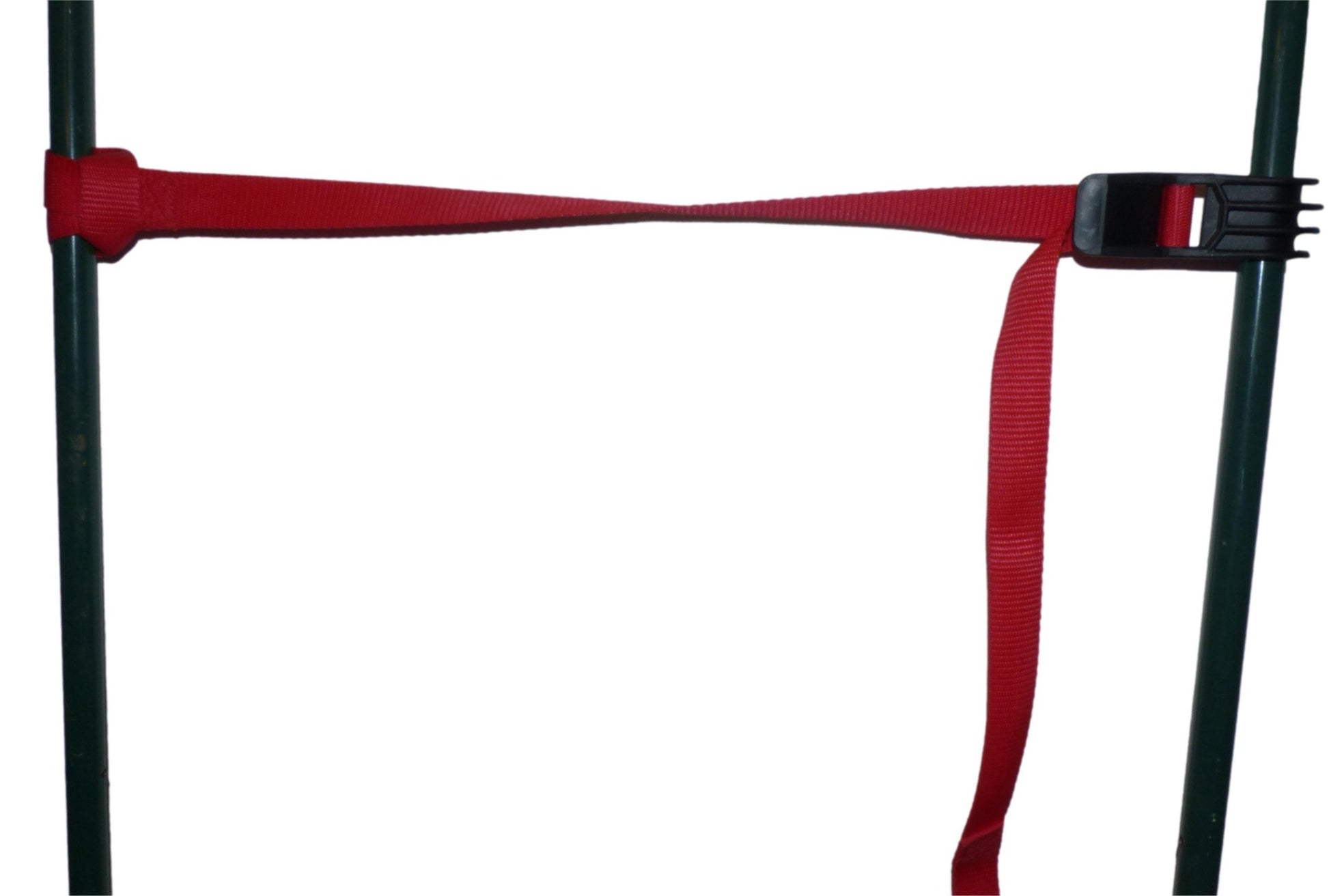 The Benristraps roll cage strap uses 25mm (1") wide webbing and is over one metre (39") long (excluding the handles) and is available in different colours. It can also be used to pull roll cages and shopping trolleys because the hook will fit over handles and the load can be pulled with the strap.