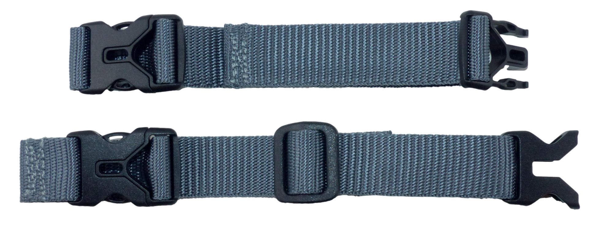 The Benristraps 25mm rucksack chest strap is designed to replace the original chest strap on a rucksack. It uses slimline quick release buckles on a loop of material to attach to the rucksack shoulder straps on each side. The strap itself is in two parts, joined by a quick release buckle. On one side of this buckle. the length of the strap is controlled by a slider buckle. This is generally used to adjust the strap to the approximate length. On the other side, the length is controlled by a pull-through design for instantaneous control. This is often used for small adjustments whilst in use.